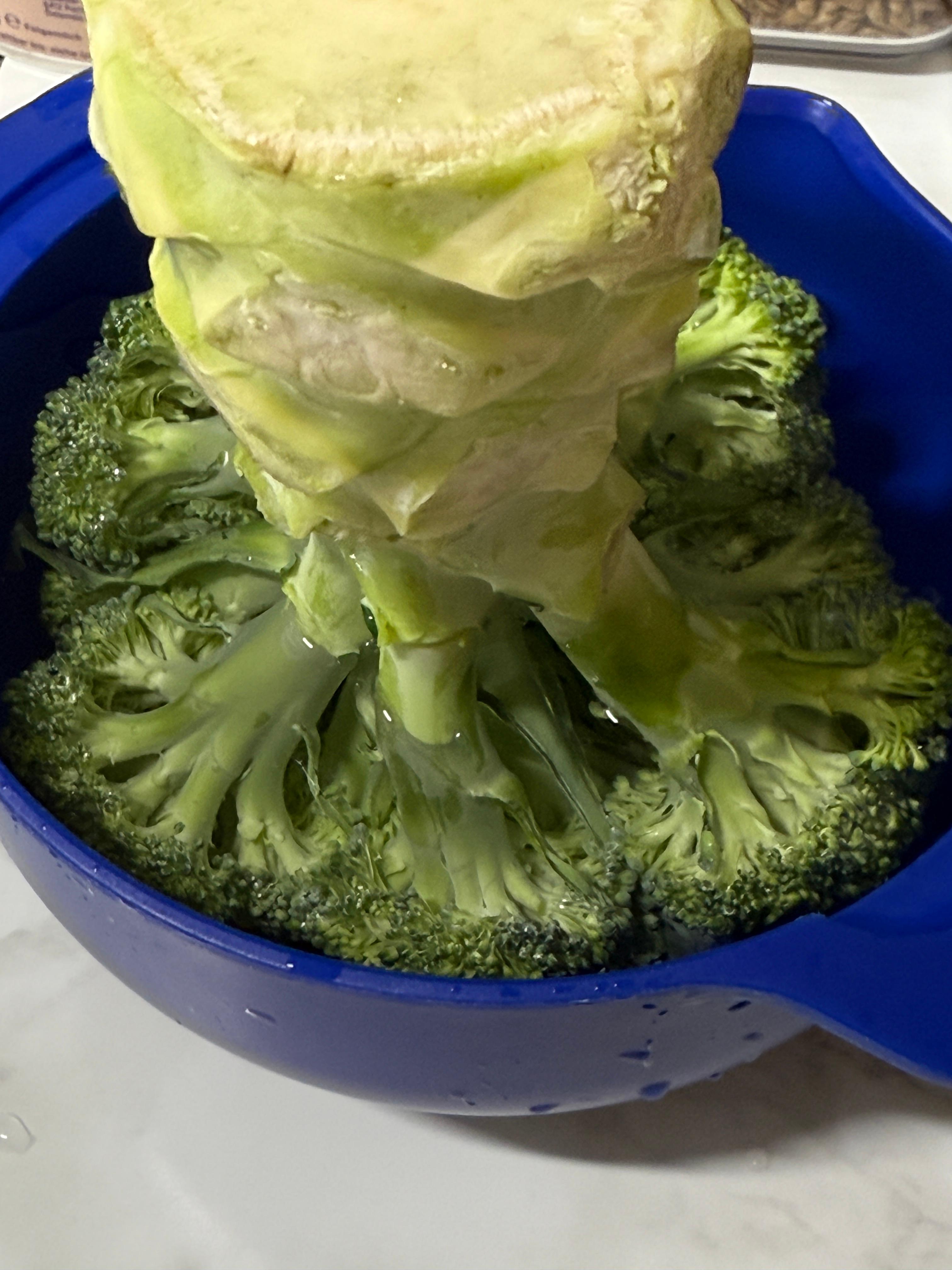 물에 브로콜리 거꾸로 세워 5분 담그기